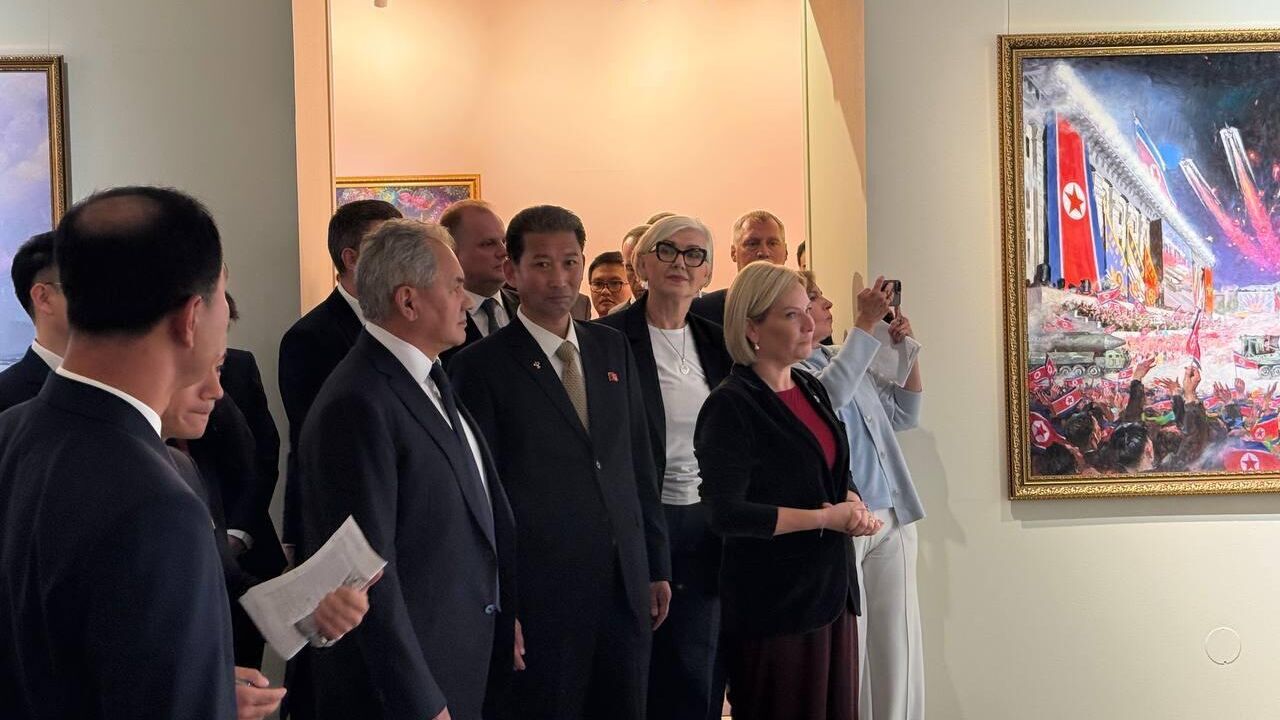 Страна великого народа" во Всероссийском музее декоративного искусства. Экспозиция включает 123 произведения, представляющие корейскую национальную живопись (Чосонхва), гравюру, керамику, мозаику и вышивку, ранее не показанные в России. Выставка позволяет зрителям погрузиться в богатое культурное наследие КНДР, отражающее национальные традиции, философию и искусство страны, а также подчеркивает важность взаимного уважения и стремление к развитию межгосударственных отношений через искусство. Вместе с министром культуры КНДР Сын Чон Гю и министром культуры РФ Ольгой Любимовой Шойгу посетил выставку, где они рассмотрели картины, посвященные участию военнослужащих КНДР в освобождении Курской области, включая полотно "В одном окопе", изображающее торжествующих российских и северокорейских бойцов на фоне государственных флагов России и КНДР. Выставка организована при поддержке министерств культуры РФ и КНДР.