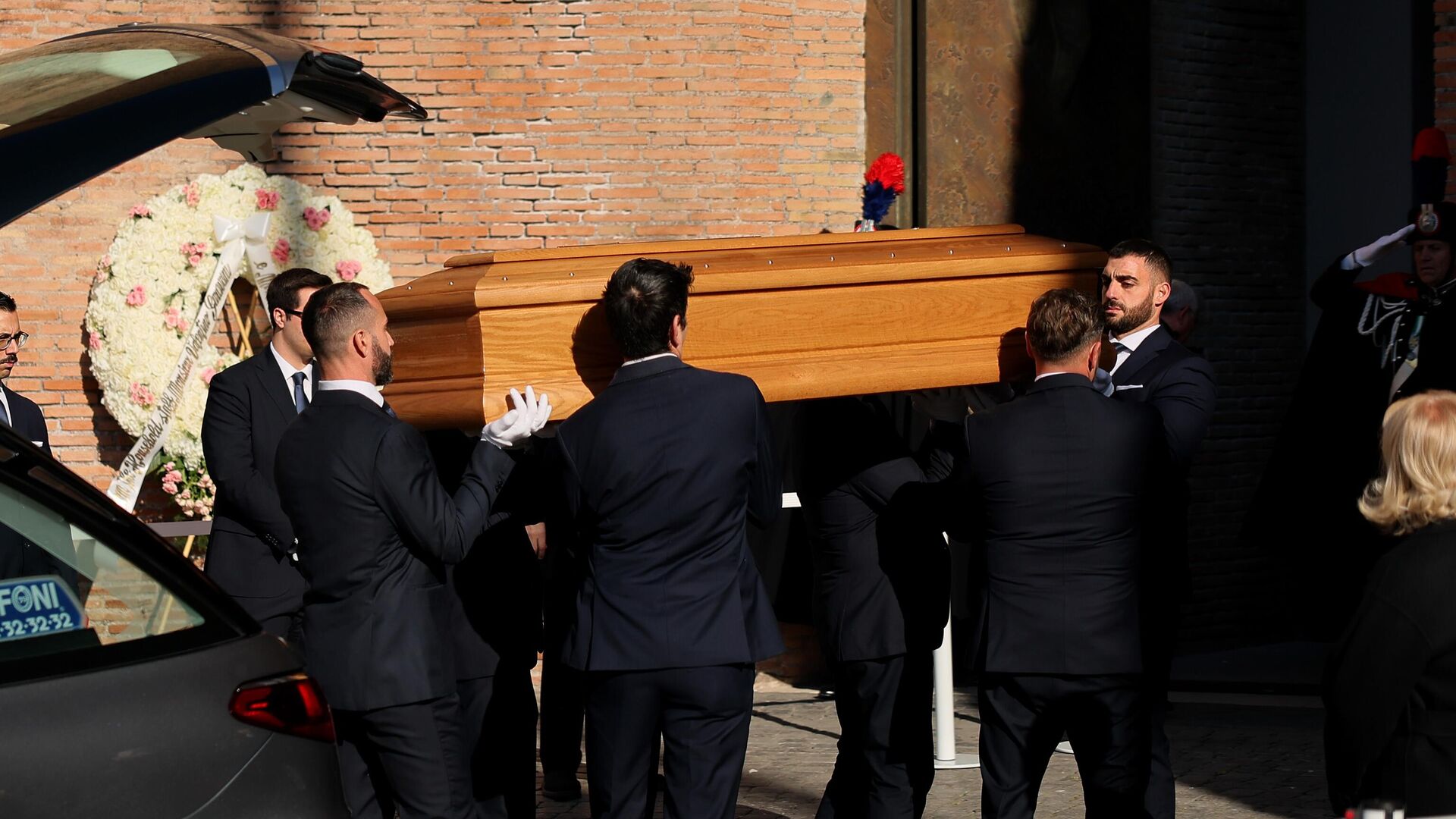 Катафалк с гробом кутюрье у входа в церковь встретили его близкие и семья, которые затем вошли внутрь. Во время церемонии в базилике звучали траурные ноты "Лакримозы" Моцарта.